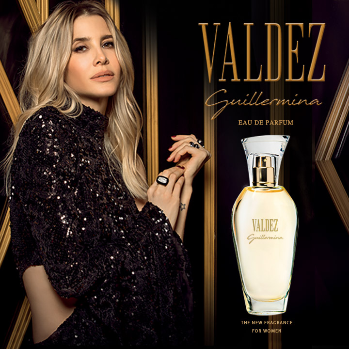 Nuevo perfume “eau de parfum” de Valdez, con una fragancia sofisticada, sensual, cálida y sugerente. Compuesto por notas cítricas de mandarina, bergamota y aterciopeladas flores de durazno e ylang ylang de Madagascar, que dan lugar a un glamoroso bouquet de rosas, flores de naranjo, jazmines y tuberosas. Sobre un fondo maderoso de sándalo de la India, cedro y vainilla. Disponible en dos presentaciones: 100ml y 50ml.
